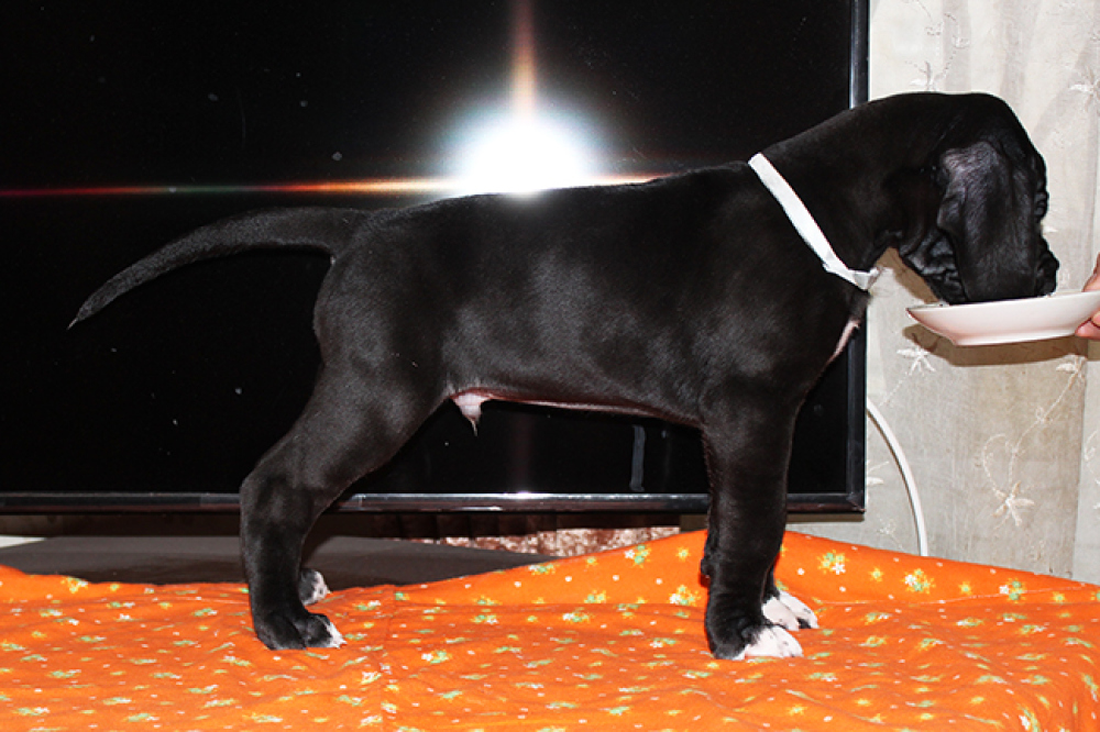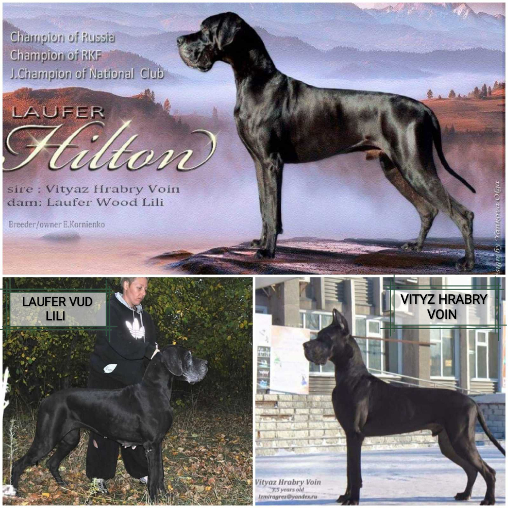Щенки немецкого дога чёрного, мраморного и серомраморного окрасов. Профессиональное разведение. На фото щенки и родители (Ch Best Of Roys Slavna Olgor - Ch Laufer Hilton)