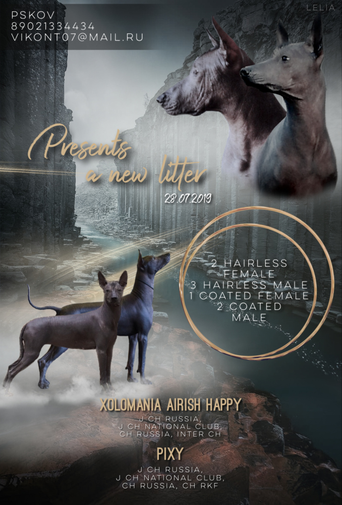 Папа: XOLOMANIA AIRISH HAPPY-ХАВЬЕР (COYUL(CACIQUE DE ZEMPOALA & XANEQUE) & XOCHIQUETZAL FROM TECUANI (GARAMBULLO FOR TECUANI & TECUANI ZAMBA FOGOSA)) ЮЧР, ЮЧНКП, ЧР, ИНТЕР ЧЕМПИОН
