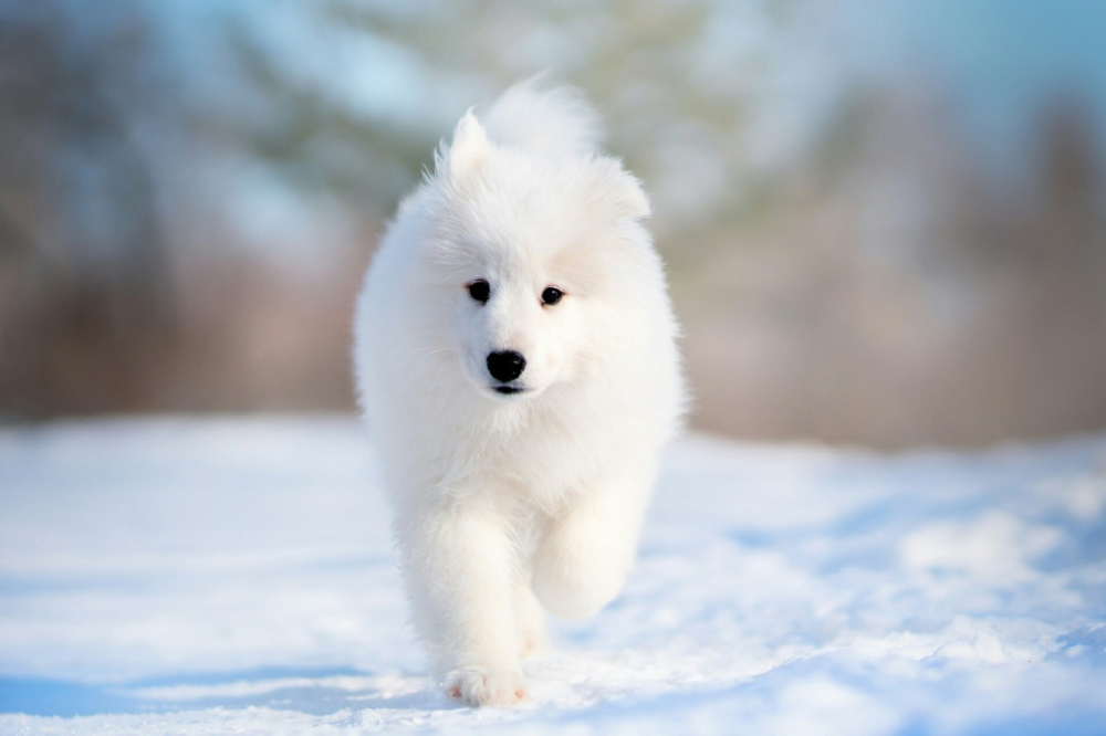 Белоснежная красавица – нельзя как-то иначе воспринимать Самоедскую собаку. При одном взгляде на нее хочется утонуть в ее густой, пышной, шелковистой шерсти и узнать о том, какую же историю таит в себе происхождение самого настоящего северного чуда.
