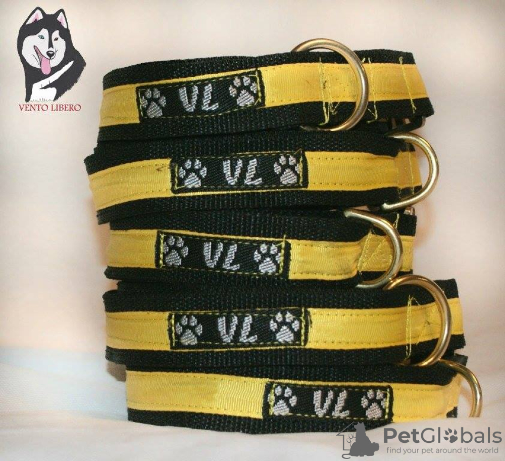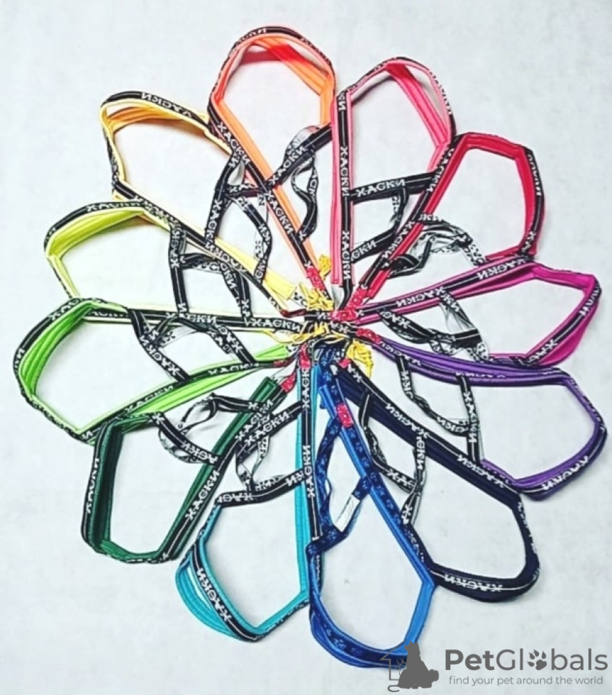 Шлейки ездовые и прогулочные. Потяги 1-2 собаки и для упряжек, амортизаторы. Ошейники 8 видов. Поводки, перестежки, попоны, тапочки, халти, сворки. Пояса каникросс и догтрекинг.